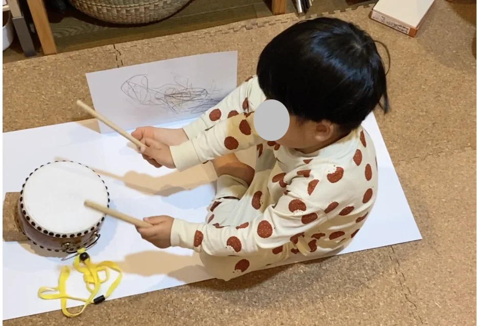 初めてのナマ和太鼓におくちポカーン。うながされるまま手拍子をしていました。
