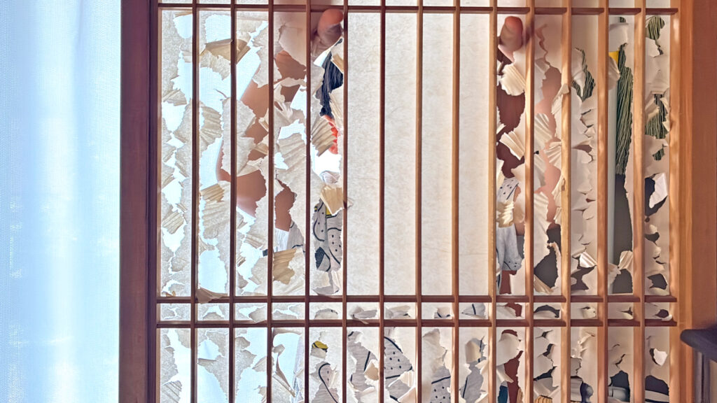 障子&幽霊の恐怖に打ち勝ちかたんといわんばかりにビリビリやっております。