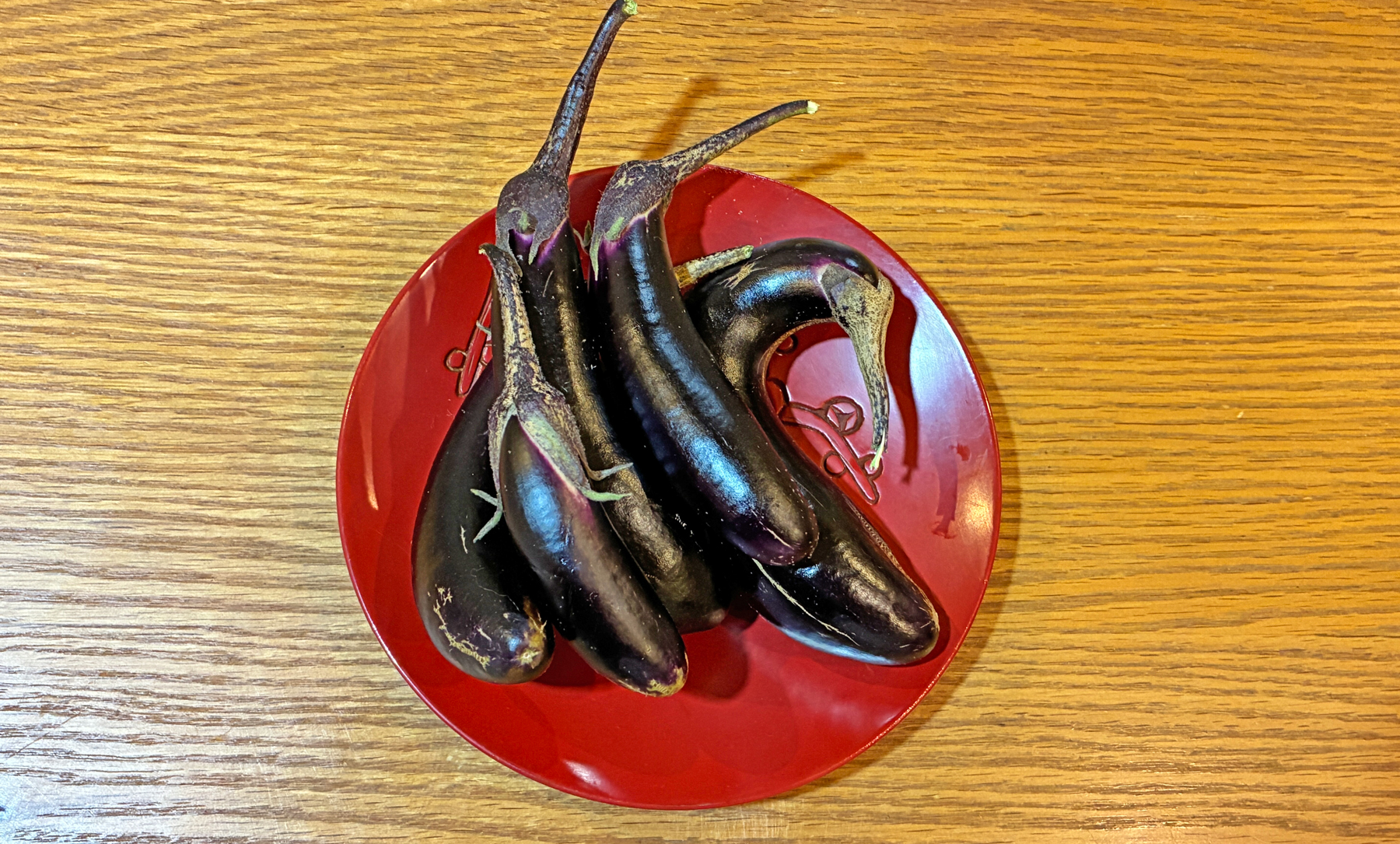 小松菜と紫蘇はバッタに食べられ、なすびだけは健気!